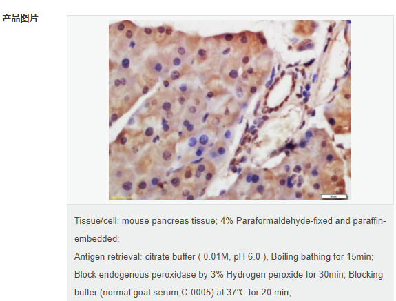 | 產(chǎn)品應(yīng)用 | ELISA=1:5000-10000 IHC-P=1:100-500 IHC-F=1:100-500 IF=1:100-500 (石蠟切片需做抗原修復(fù)) not yet tested in other applications. optimal dilutions/concentrations should be determined by the end user. |