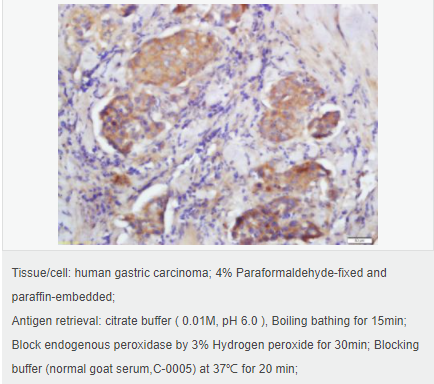 | 產(chǎn)品應(yīng)用 | ELISA=1:5000-10000 IHC-P=1:100-500 IHC-F=1:100-500 IF=1:100-500 (石蠟切片需做抗原修復(fù)) not yet tested in other applications. optimal dilutions/concentrations should be determined by the end user. |